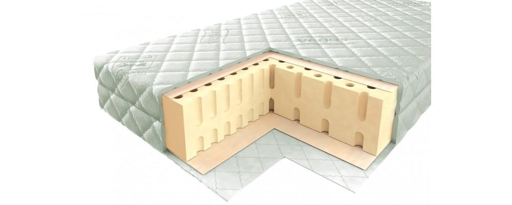 La structure du matelas est comme un sandwich avec de nombreuses couches. Ici alternent latex et coira. Ils confèrent au produit des caractéristiques d'élasticité accrues. L'accessoire de couchage convient au maintien de la posture, ainsi qu'aux problèmes du système musculo-squelettique.
