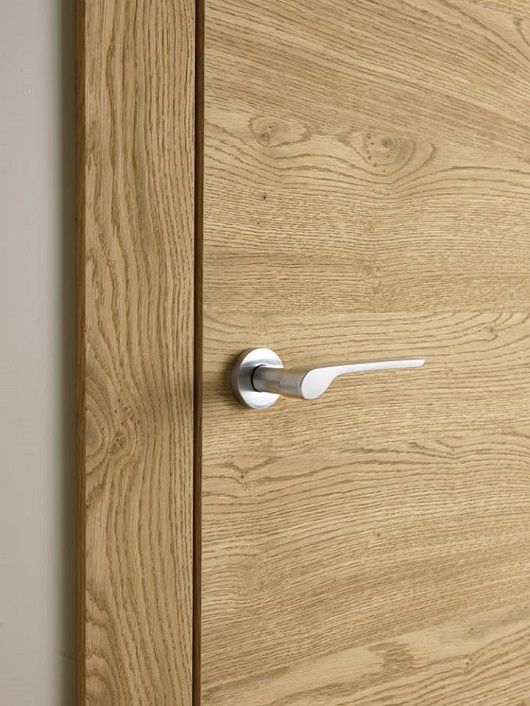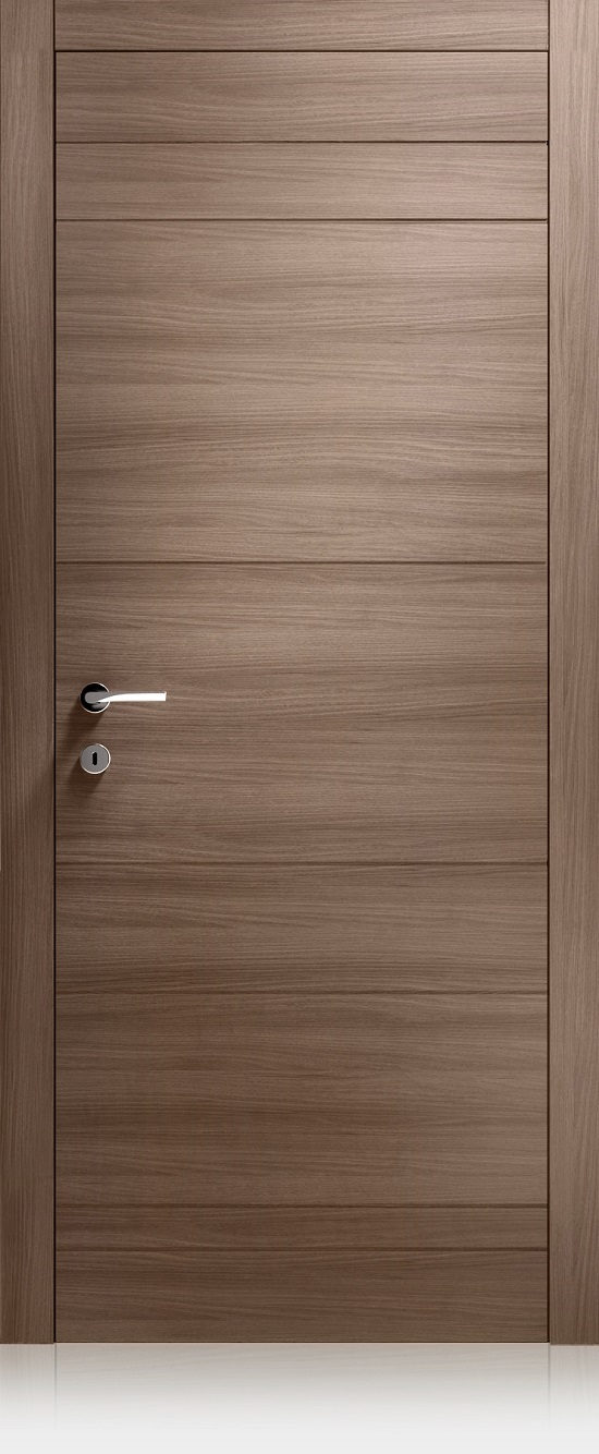 Un large assortiment est représenté par une gamme de portes intérieures en placage imitant la coupe et la texture du bois naturel.